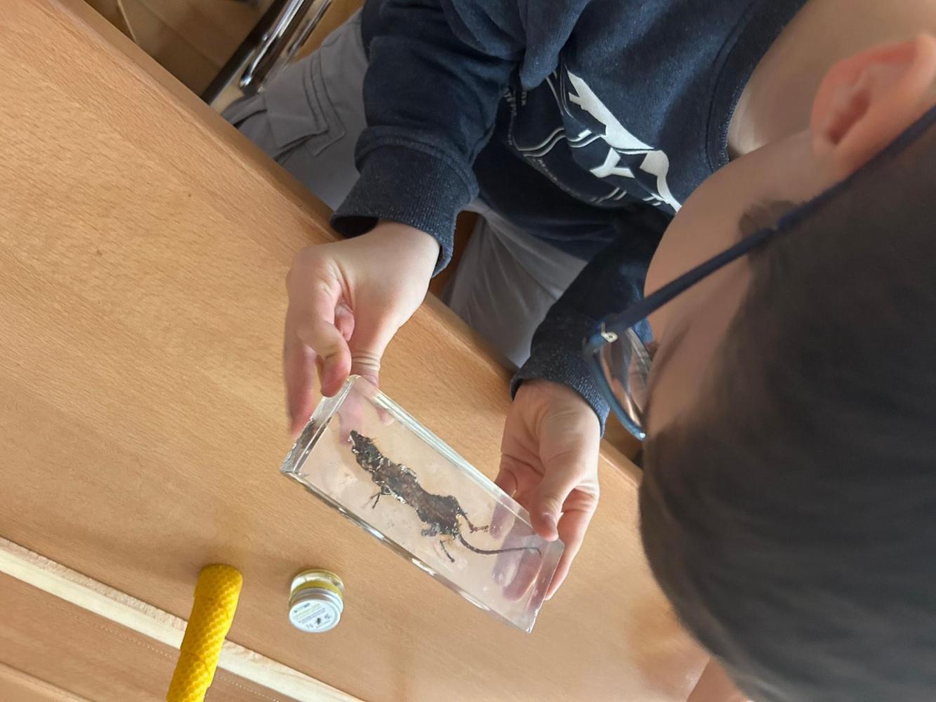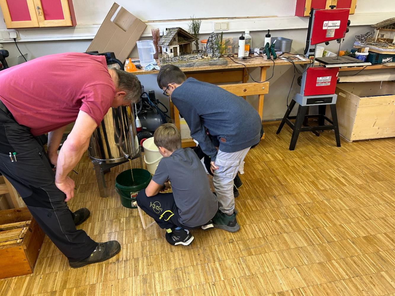 In der Imkerei erwartete uns ein ebenso faszinierender Einblick in die Welt der Bienen. Zunächst erfuhren wir viel Interessantes über das Leben der Bienen und ihre enorme Bedeutung für die Natur. Danach verkosteten wir unterschiedliche Honigsorten und lernten ihre vielfältigen Geschmacksnuancen kennen. Außerdem bauten wir Rähmchen, in denen die Bienen später ihre Waben anlegen können. Zum Abschluss drehten wir Kerzen aus Bienenwachs und stellten unseren eigenen Lippenpflegestift her.