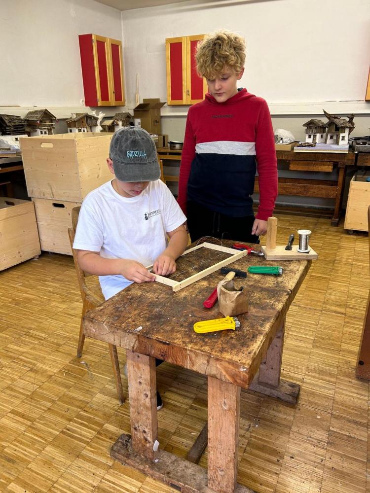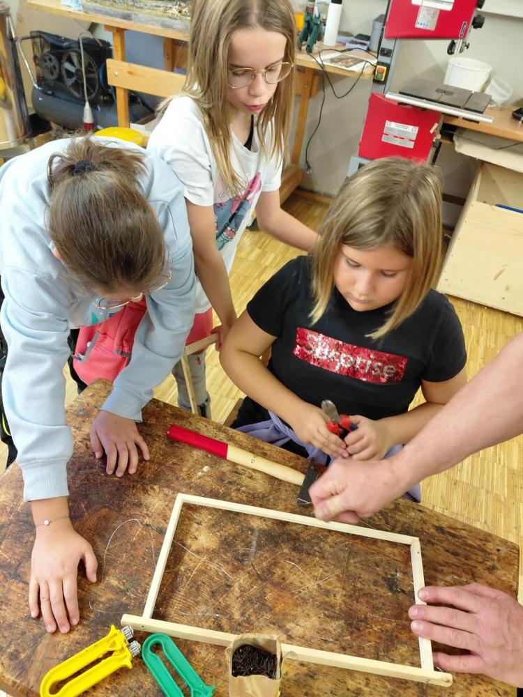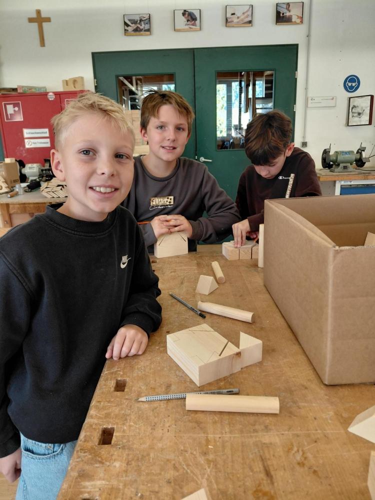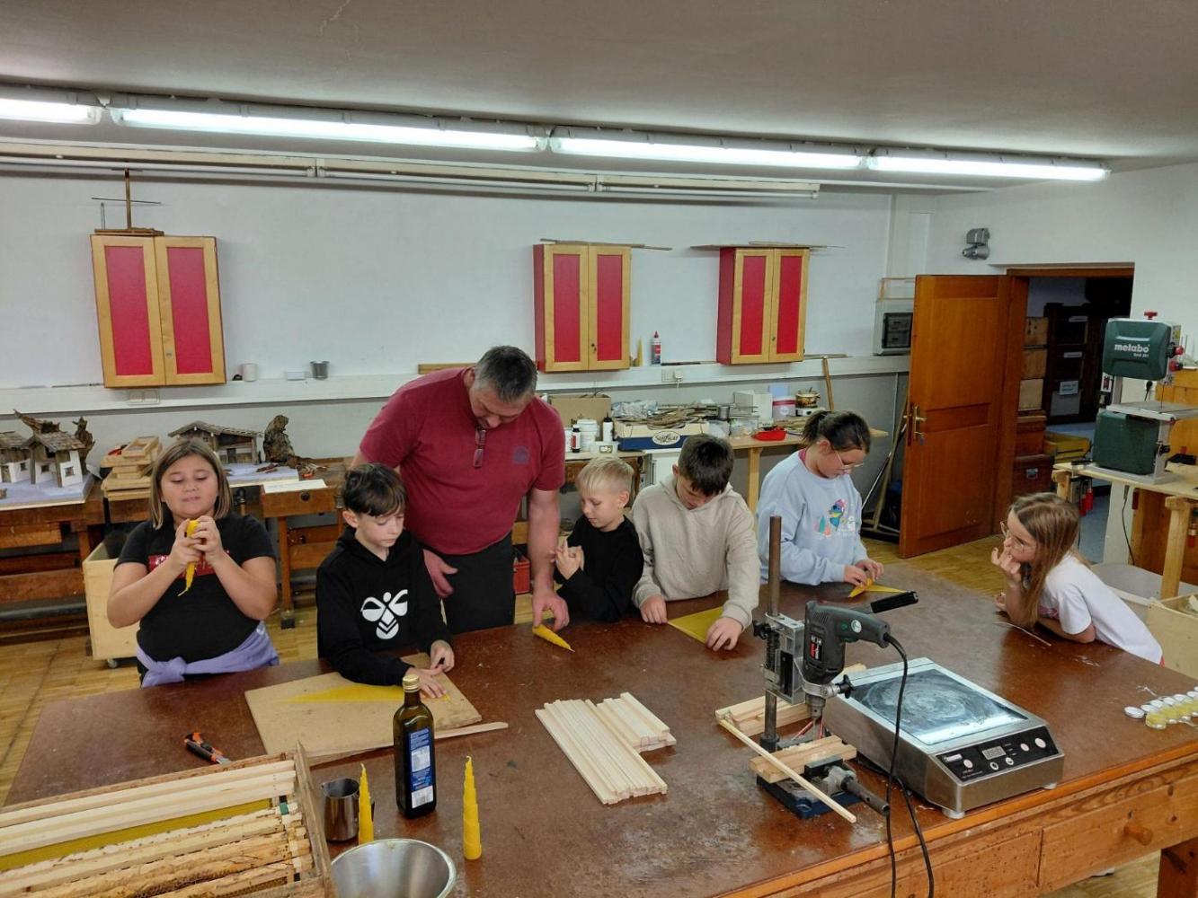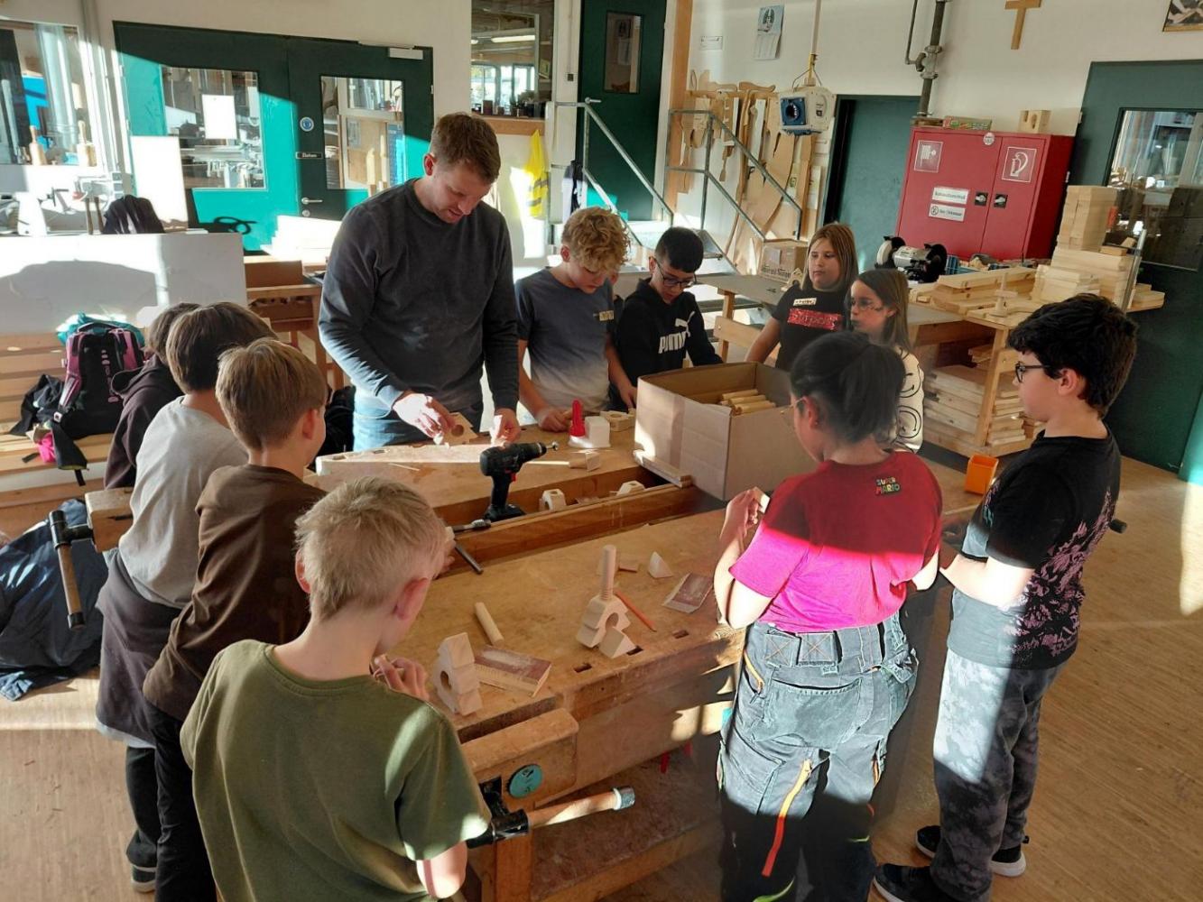 In der Tischlerei starteten wir mit einem Rundgang durch die Werkstatt, bei dem uns verschiedene Geräte wie die Standbohrmaschine, der Schleiftisch oder die Kreissäge vorgestellt wurden. Anschließend durften wir selbst handwerklich tätig werden und einen Nussknacker in Baumform herstellen.