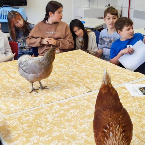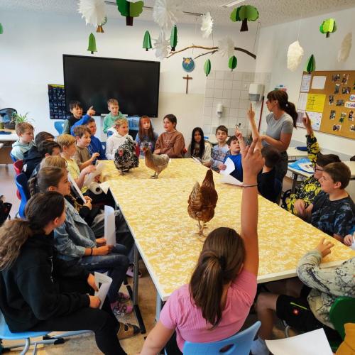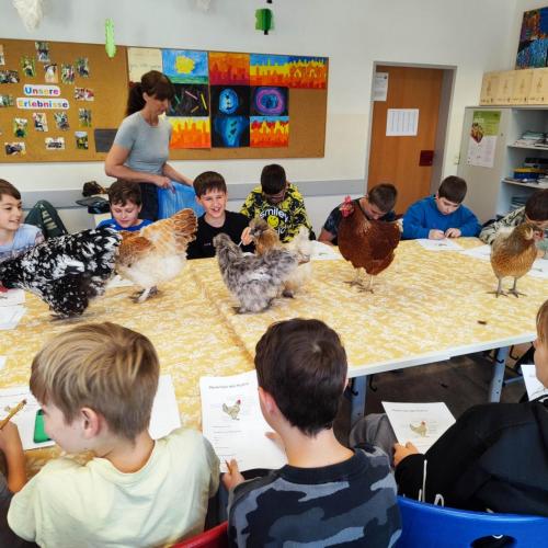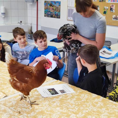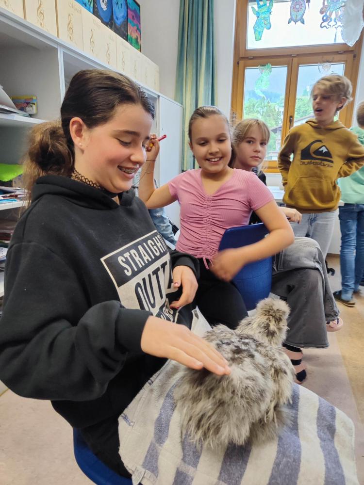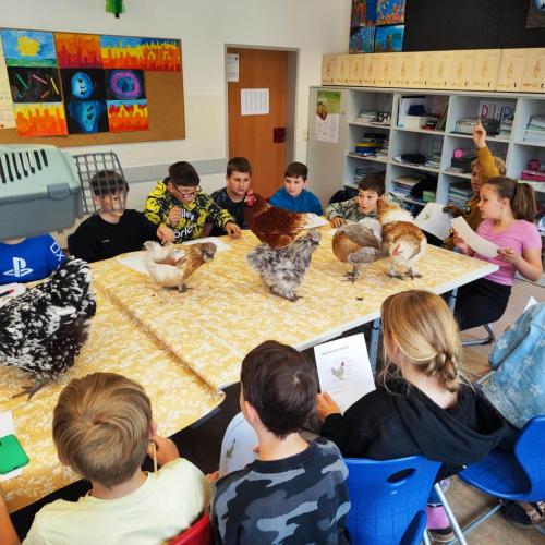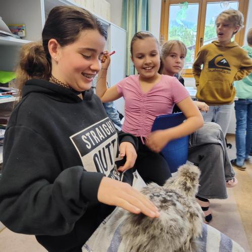 Am 23. Mai 2025 durfte die Klasse 1a der IT-MS Imst ganz besondere Gäste begrüßen: Therapiehühner! Im Rahmen des Biologieunterrichts lernten die SchülerInnen auf spannende und anschauliche Weise alles rund ums Huhn.