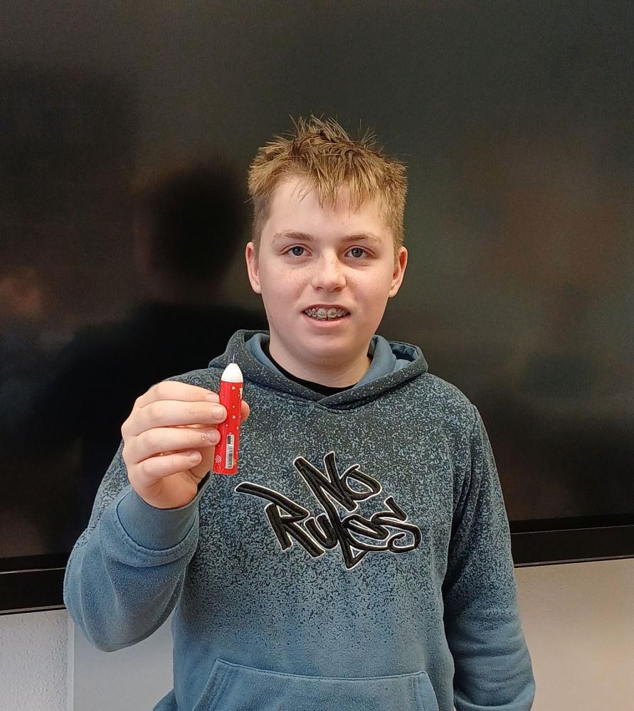 - I´ve made a dart out of a pen and a needle. But it doesn´t fly very well; so I give it a 5 out of 10. (Lorenz Köll)