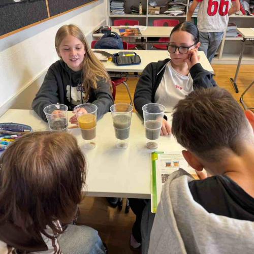 Der Versuch machte den Kindern sehr viel Spaß, und sie hielten ihre Beobachtungen sorgfältig fest. Dabei konnten sie auf anschauliche Weise lernen, wie unterschiedlich Böden aufgebaut sind und welche wichtige Rolle sie für den Wasserkreislauf in der Natur spielen.