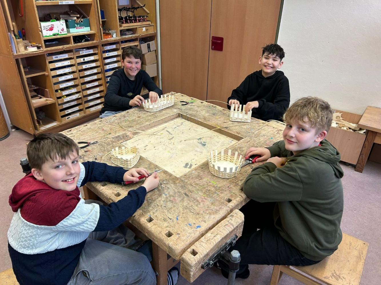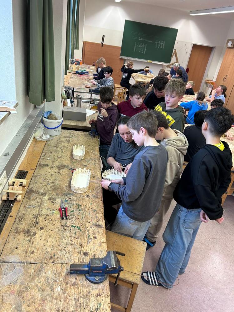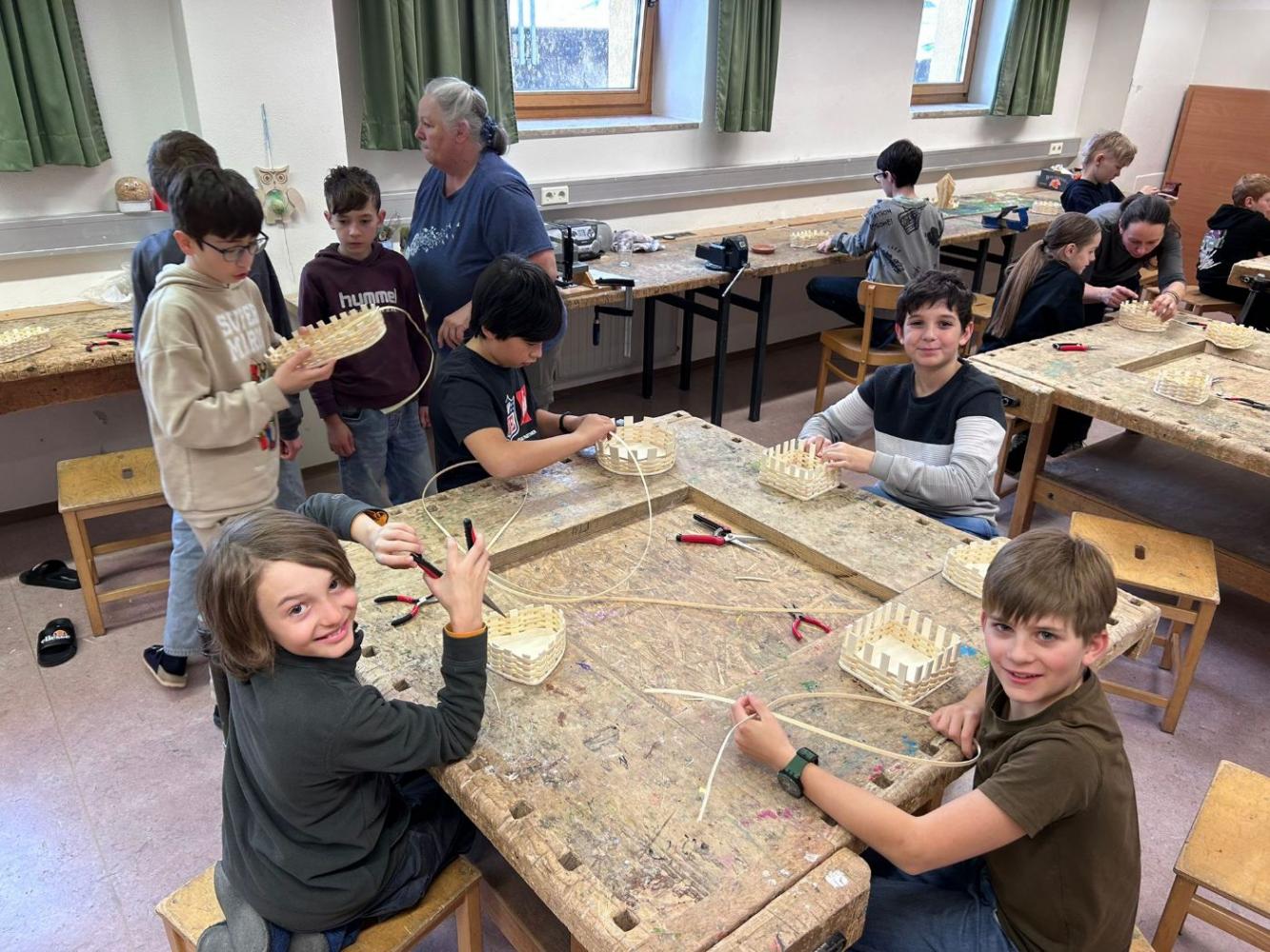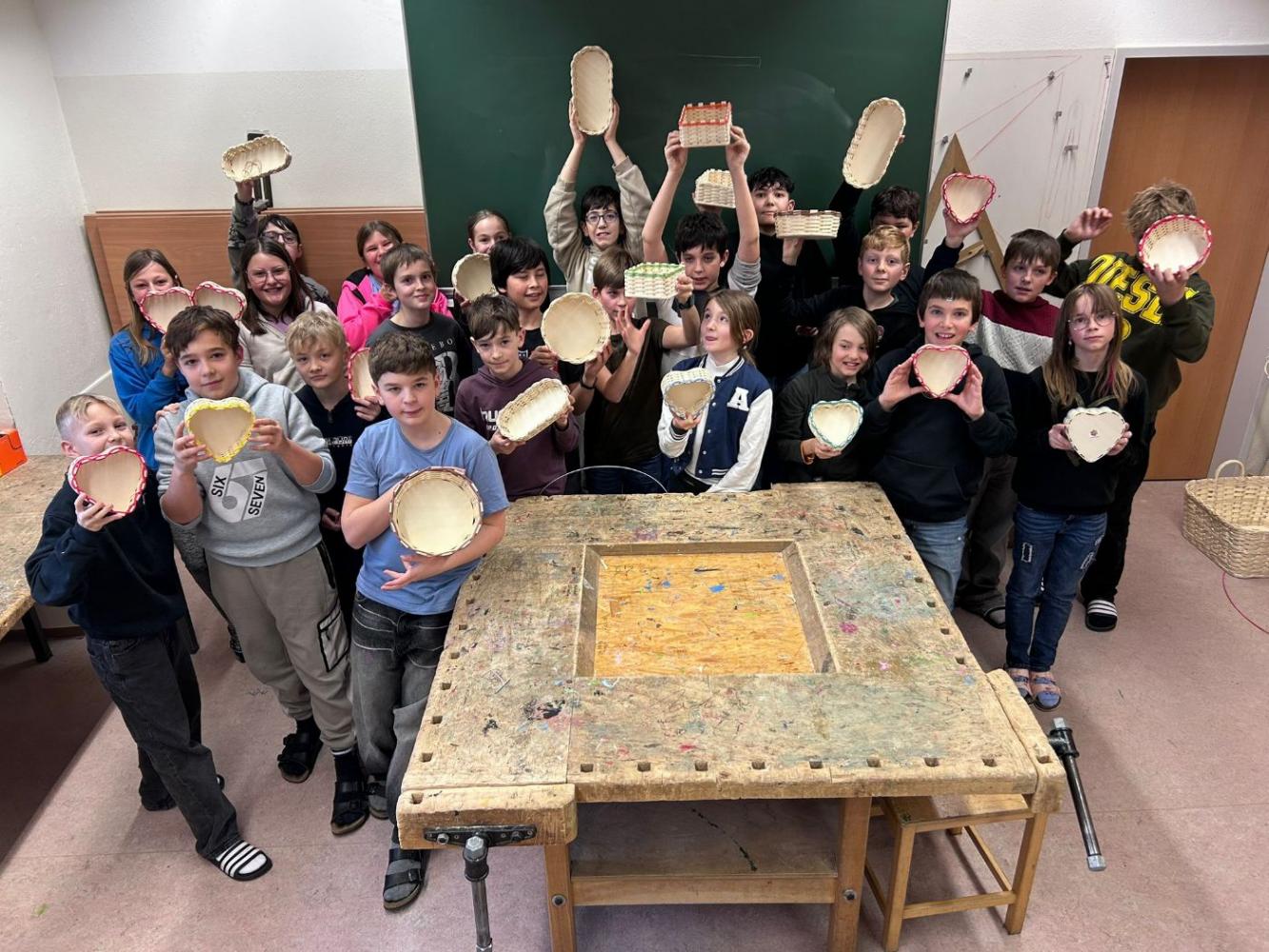 Im Rahmen des MINT-Jahresthemas „Holz“ durften die Schülerinnen und Schüler der 1a an einem Flecht-Workshop teilnehmen. Unter fachkundiger Anleitung wurde eifrig gewerkt, gestaltet und ausprobiert. So entstanden viele schöne geflochtene Körbe in verschiedensten Formen.