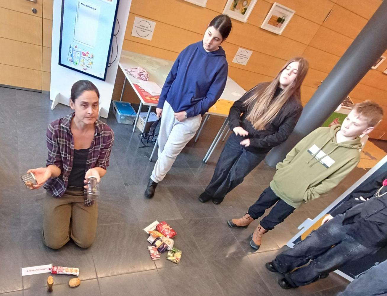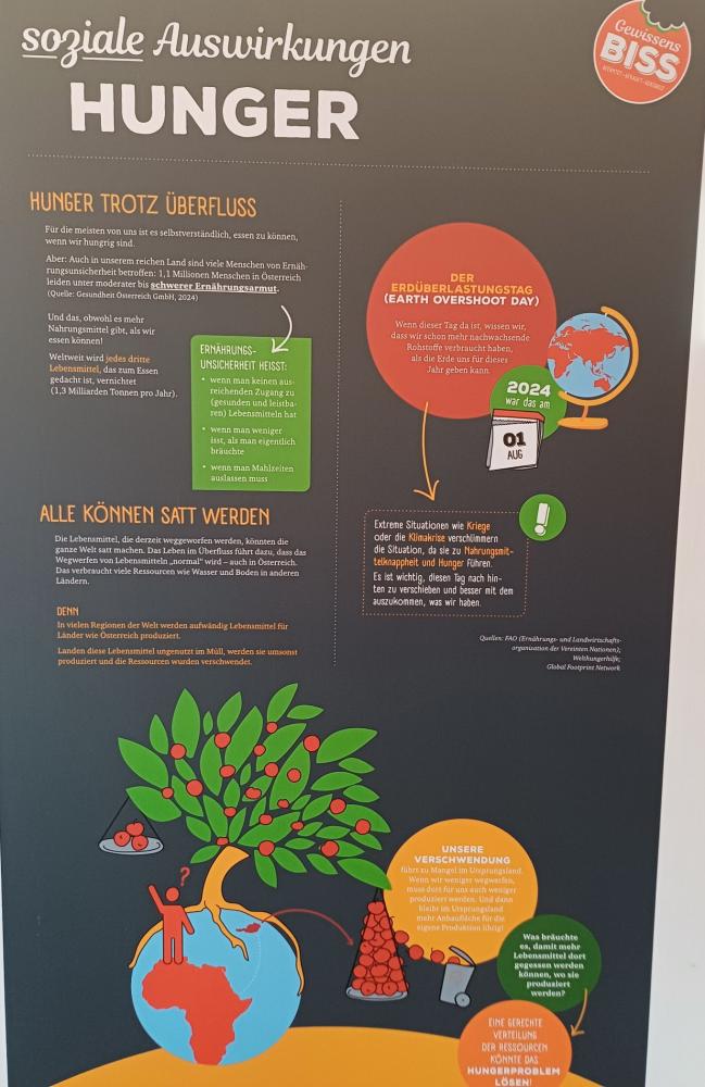 Bei der Ausstellung GewissensBISS durften die Schülerinnen und Schüler der 3c viel Wissenswertes rund um das Thema Lebensmittelverschwendung erfahren.