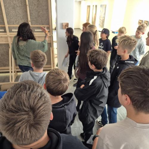 Am 2. Oktober 2025 besuchte die 3a-MINT-Klasse der IT‑Mittelschule Imst wie jedes Jahr die Galerie Theodor von Hörmann in Imst. Im Mittelpunkt der diesjährigen Ausstellung stand die Gestaltung von Wänden – Die Schülerinnen und Schüler erfuhren Wissenswertes über historischen Fresken und Sgraffito und bestaunten moderne Interpretationen.