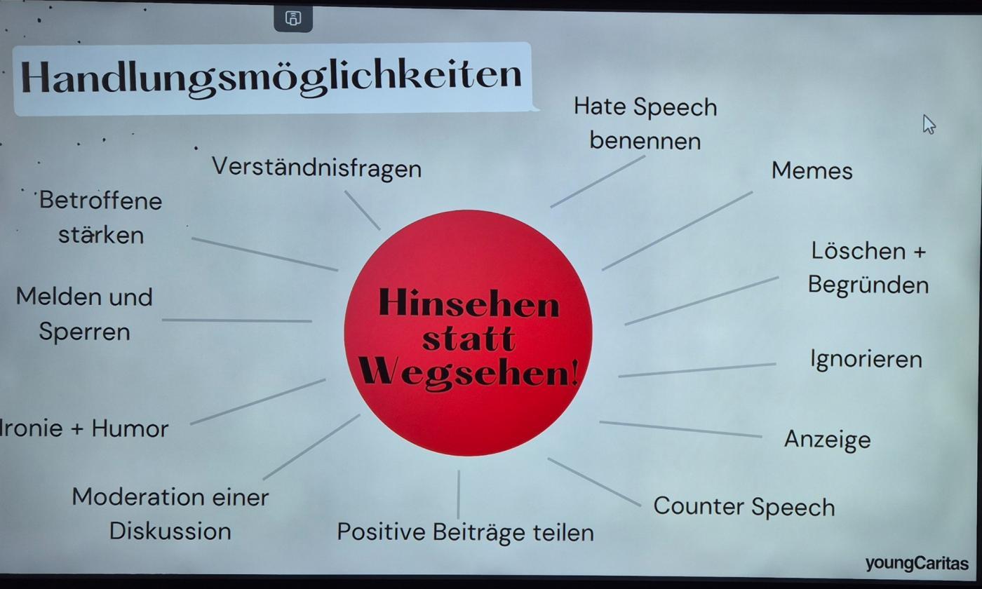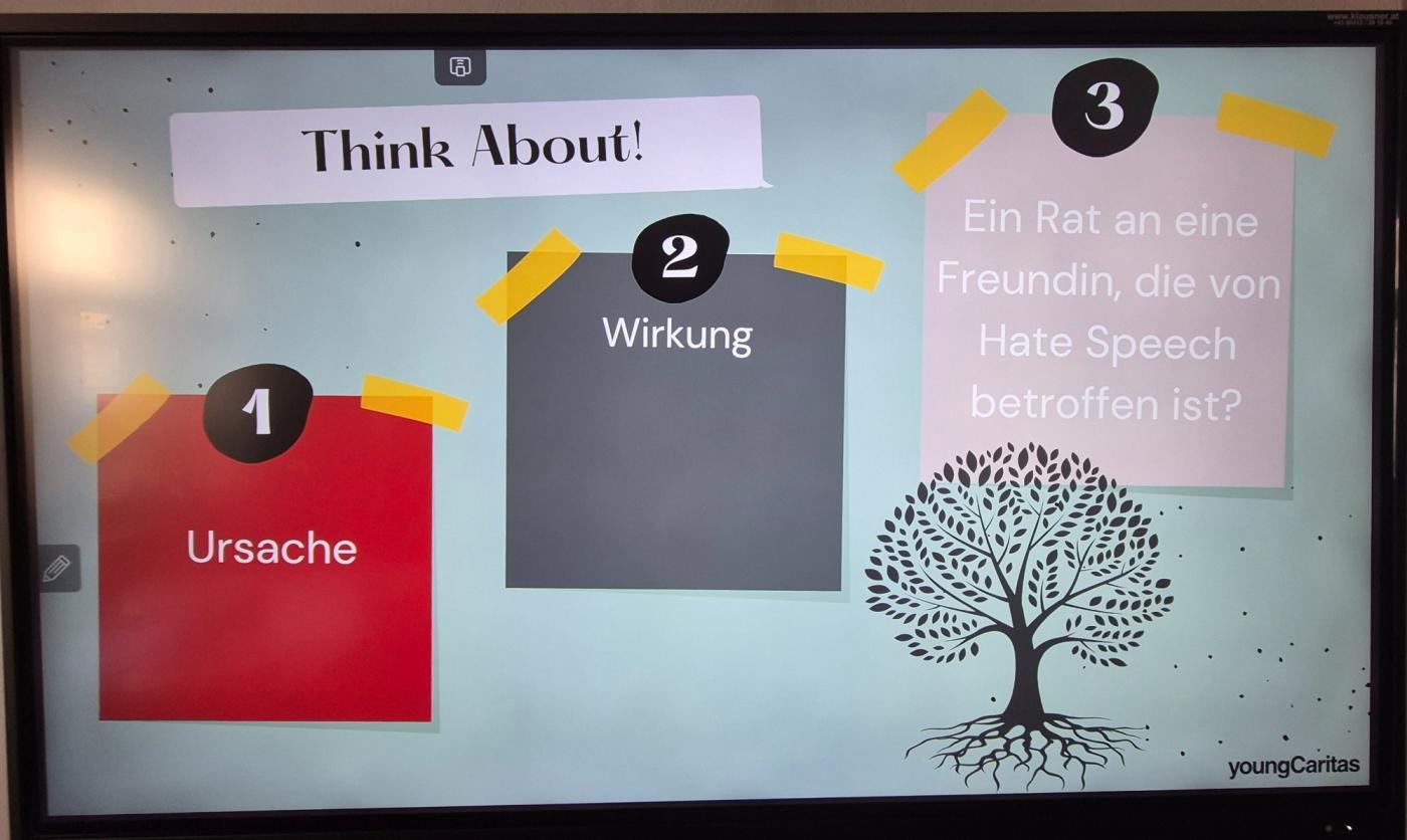 Am Donnerstag, den 13. November 2025, nahm die 3C Klasse an einem interaktiven Workshop zum Thema „Digitale Zivilcourage“ teil. Durchgeführt wurde dieser von Romina Hammermann, einer Mitarbeiterin der engagierten Organisation „youngCaritas“, die es sich zum Ziel gesetzt hat, junge Menschen für ein respektvolles und verantwortungsbewusstes Verhalten im Internet zu sensibilisieren.