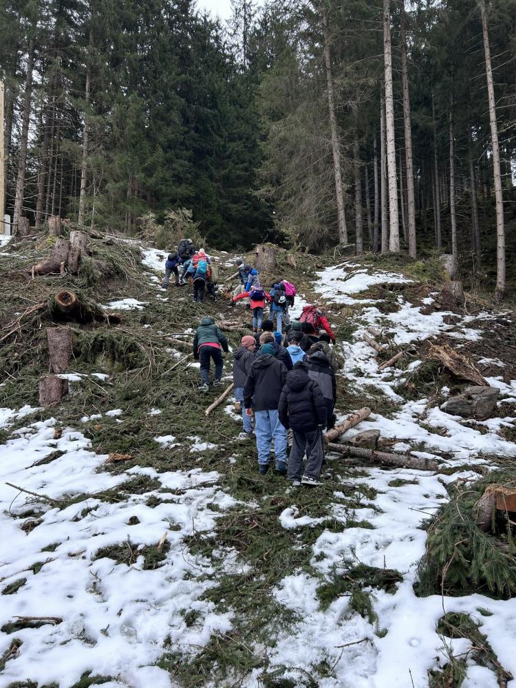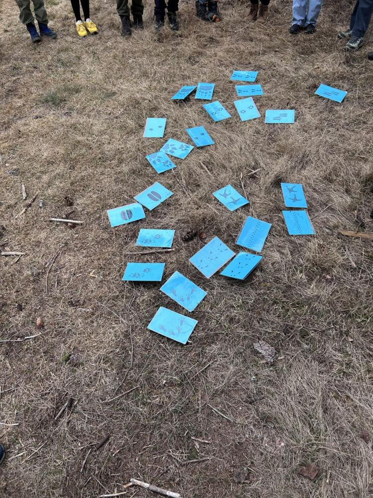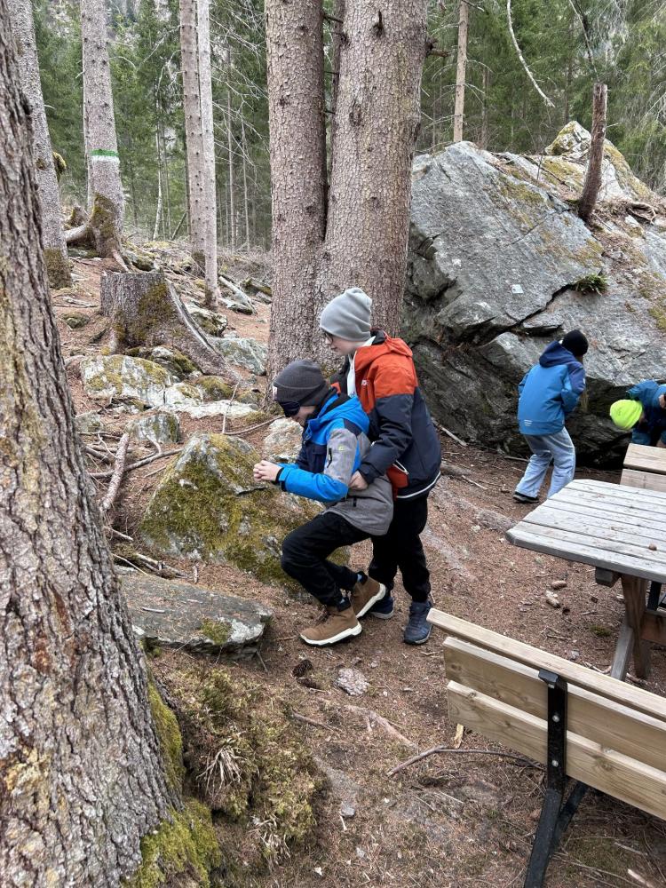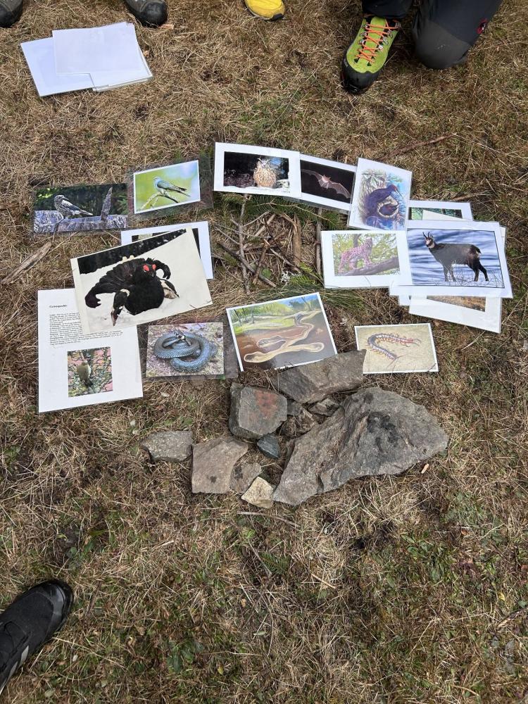 Anschließend ging es in den Wald. Nach einem steilen Aufstieg spielten wir ein Spiel zu verschiedenen „Trittspiegeln“ (Fußabdrücken von Tieren). Auch zum Thema Symbiose konnten die Kinder den Wald auf spielerische Weise entdecken.