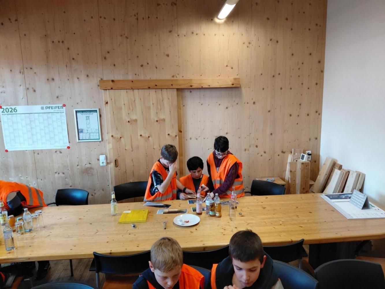 Im Rahmen unserer Schulpartnerschaft waren wir zu einer spannenden Werksführung bei unserem Schulpaten Holz Pfeifer eingeladen. In zwei kleinen Gruppen erkundeten wir – ausgestattet mit Gehörschutz und Schutzweste – die beeindruckend großen Produktionshallen.